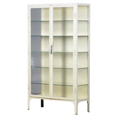 Gabinete médico industrial vintage de hierro y cristal, años 70