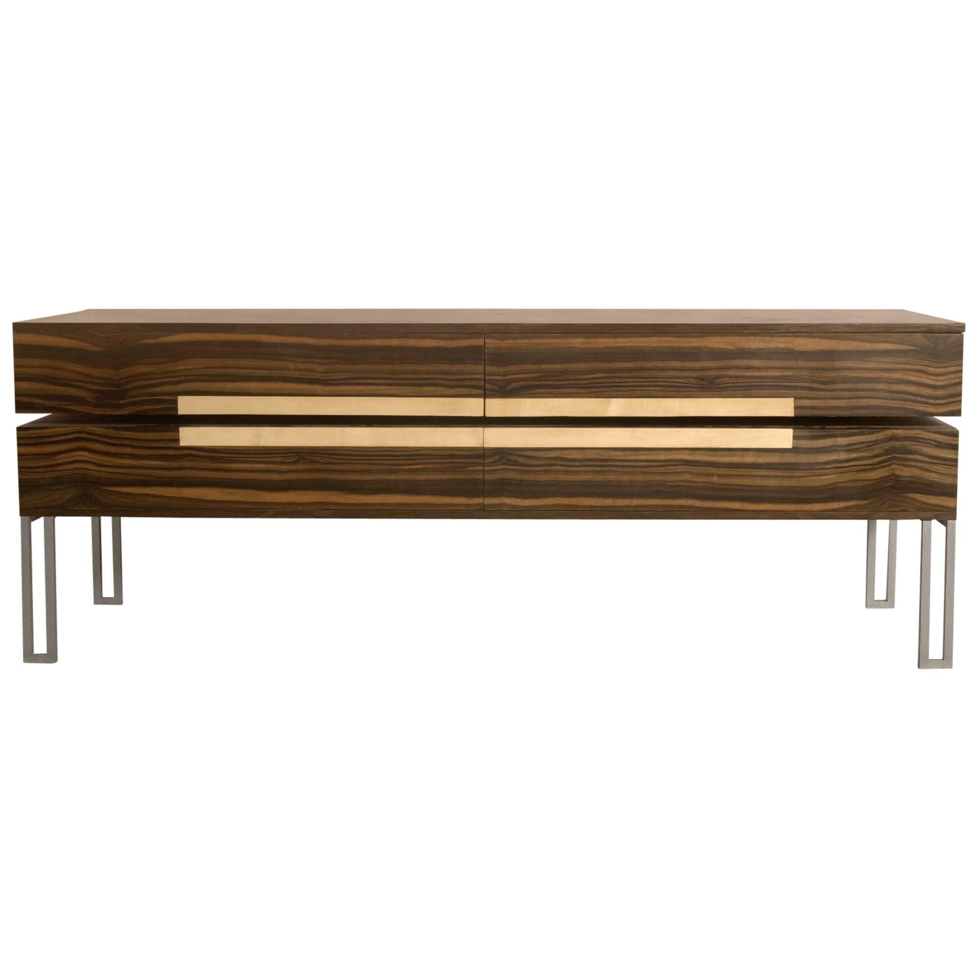 Credenza atribuida a A.A. Patijn muestra la refinada sensibilidad geométrica del diseño Art Déco holandés de la primera época. Las cuatro puertas de los armarios están chapadas en no...