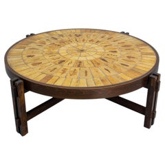 Mesa de centro con tablero de loza vidriada y azulejos de terracota al estilo de Roger Capron. El contraste entre el aspecto lustroso y brillante de los azulejos y la sobriedad de la...