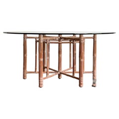 Pareja de Mesas Vintage de ratán con tableros de cristal gris claro. Algo de desgaste en el acabado como se muestra en las fotos. Medida Buen estado general robusto, con pocos arañaz...