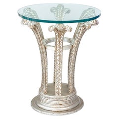 Esta elegante mesa auxiliar francesa, de estilo Luis XVI, presenta un marco de madera dorada ricam...