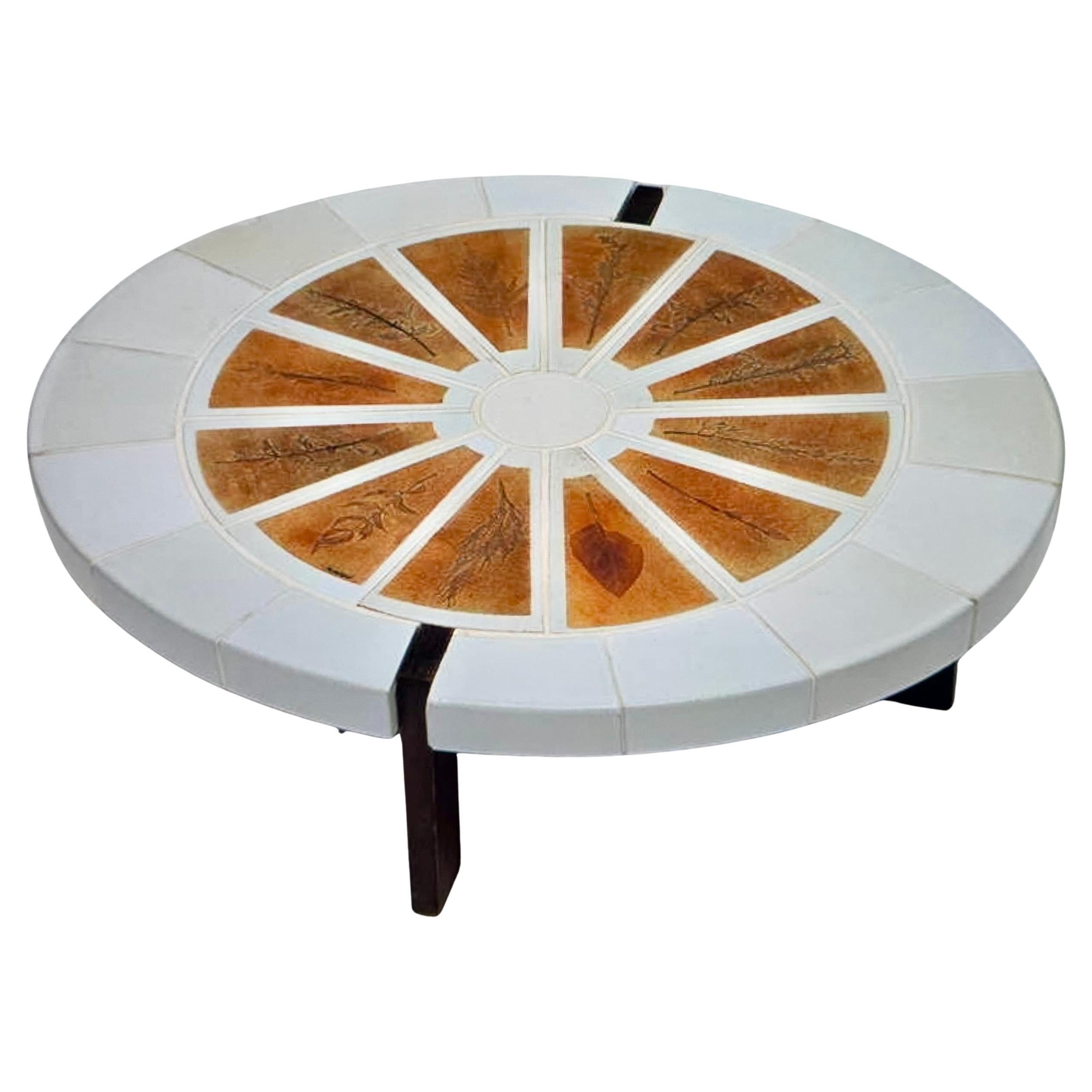 Mesa baja danesa de mediados del siglo XX, estructura de madera y tapa de cerámica