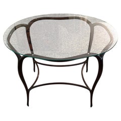 Mesa de hierro forjado y cristal, Bélgica moderna de mediados de siglo. Extravagante mesa auxiliar de hierro forjado artesanal con tablero de 19" de cristal. Composición de hierro f...