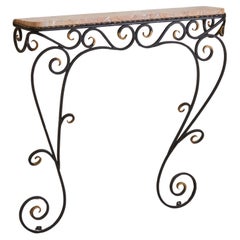 Consola demiluna francesa Luis XVI del siglo XIX con tapa de mármol pintada