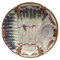 Plato de ostra de mayólica Keller & Guerin Saint Clement, hacia 1890. Referencia / página 98 "Coleccionismo de placas de ostras" de Jeffrey B. Snyder.
