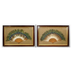 Pareja de placas de pared victorianas inglesas en forma de abanico de plumas de pavo real