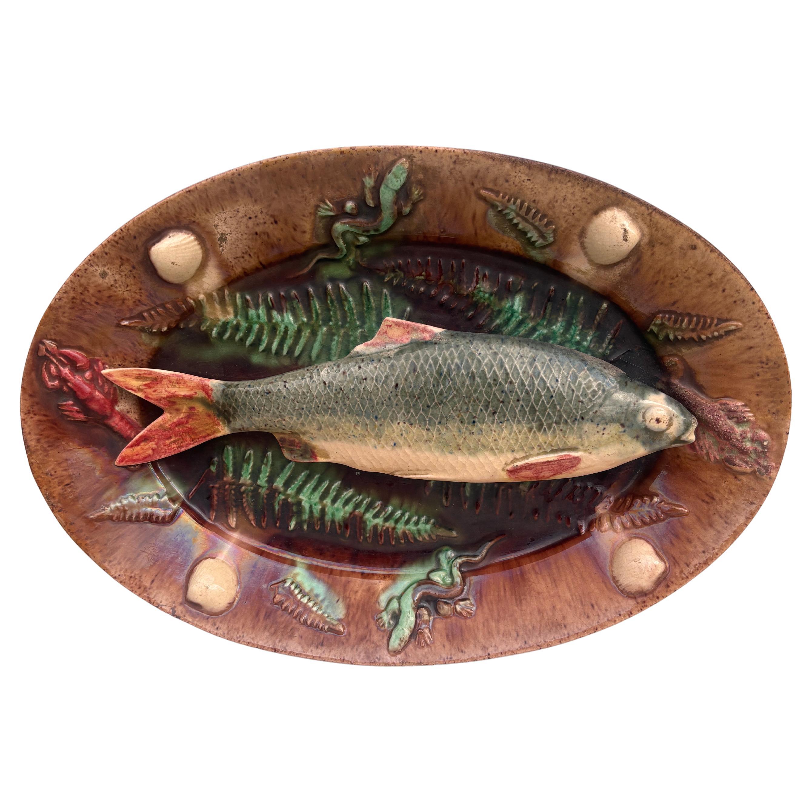 Plato de ostras de mayólica francesa Salins, hacia 1890