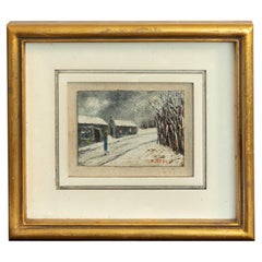Se trata de un óleo sobre lienzo de la escuela europea de mediados de siglo que representa una escena callejera de París. Está firmado de forma algo ilegible. El marco es de época y ...