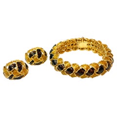 Conjunto vintage de pulsera y pendientes Piaget, oro amarillo de 18 quilates y esmalte