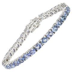 Esta pulsera es preciosa y tiene un diseño fabuloso. Hay 8 piedras de tanzanita de talla ovalada que miden 4,5 x 3,5 mm y totalizan 1,68 quilates. Cada piedra está rodeada de zafiro...