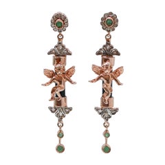 Pendientes RETRO con rubí y diamantes talla rosa Oro de 18 quilates y plata