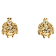1990's Gianni Versace Vintage Pendientes de clip de cristal de greca y diamantes de imitación azules