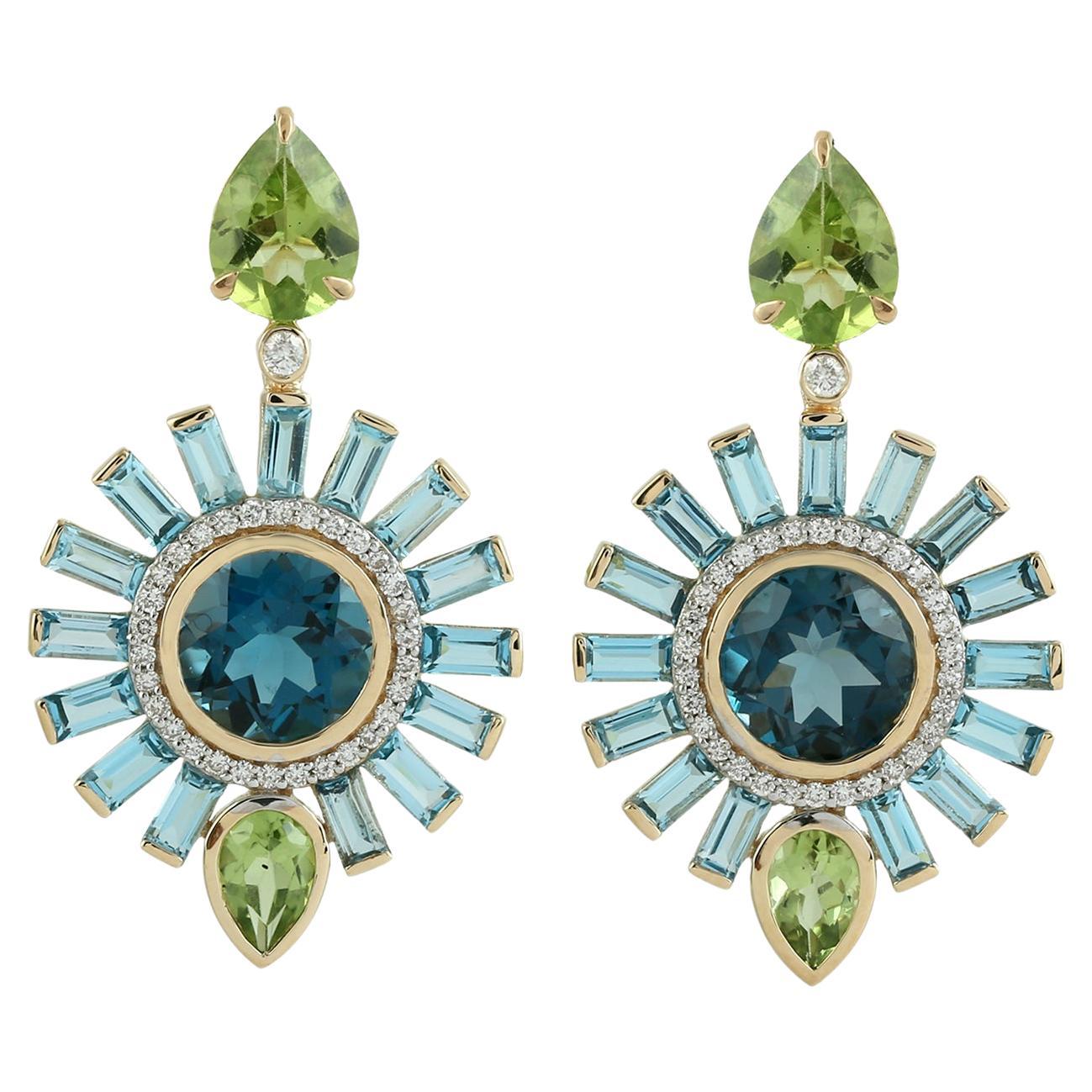 2.º década del siglo XXI Tailandés Artesano Pendientes Topacio Azul
