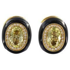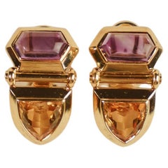 Un llamativo par de pendientes colgantes de citrino de lujo, elaborados con maestría en rico oro amarillo de 18 quilates y diseñados para mostrar el color y la presencia excepcionale...