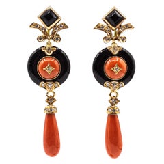 Pendientes aldaba de puerta de oro amarillo de 14 quilates con diamante y ónice de 0,58 ct