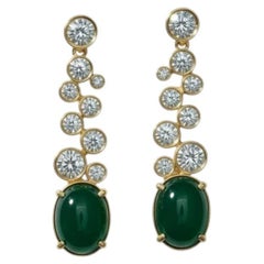Una audaz declaración de moderna elegancia, estos pendientes de oro amarillo de 14 quilates presentan elegantes círculos de ónice tallados, acentuados con brillantes diamantes que pe...