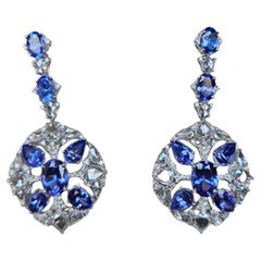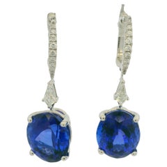 Nuevo Pendiente de oro blanco de 14 quilates P 1,3 quilates de tanzanita y zafiro talla diamante de ley