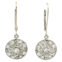 Pendientes de gota de diamantes eduardianos antiguos de oro de 18 ct y platino de 1,90 quilates
