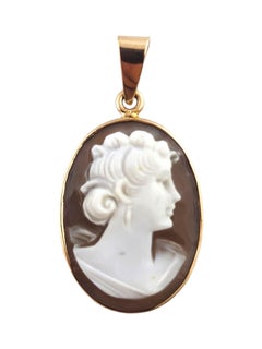 Colgante/broche antiguo de oro amarillo de 14 quilates con camafeo tallado a mano de lirios de Pascua, mariposas y capullos de rosa siglo XIX Romance moderno, camafeo antiguo magnífi...