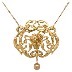 Collar Colgante Antiguo Oro de 15 ct Estampado Alrededor de 1910 Retrocede en el tiempo con este exquisito collar de oro amarillo de 15 ct de la época eduardiana. Esta asombrosa ...