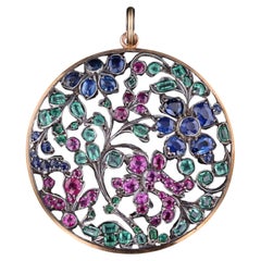 Antiguo Colgante Barroco Ibérico de Esmeralda y Plata Dorada, Siglo XVIII