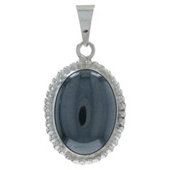 Colgante Concha Ágata Laguna Ágata Laguna, Espinela, Diamantes y oro de 14k Concha de ágata lagunera tallada (20 mm de diámetro) con centro de impresionante espinela gris y nueve d...