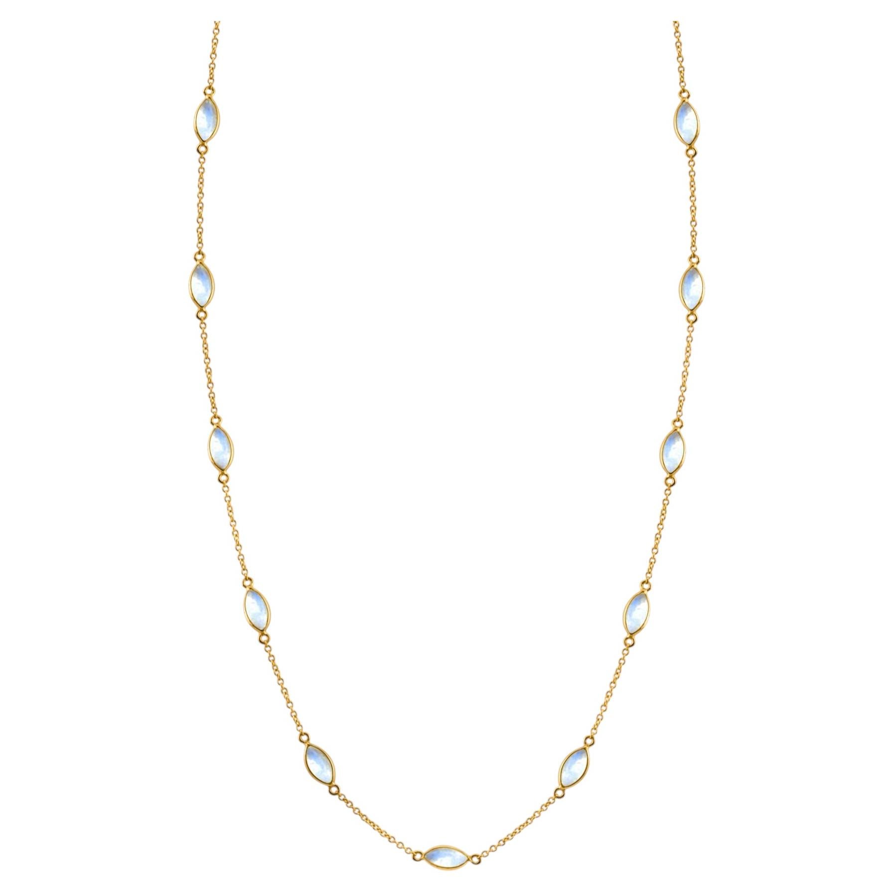 Un luminoso y azul destellante orbe redondo de 12 mm de piedra lunar arco iris es la estrella de este colgante de oro de 18 quilates finamente elaborado. La piedra está rodeada de un...