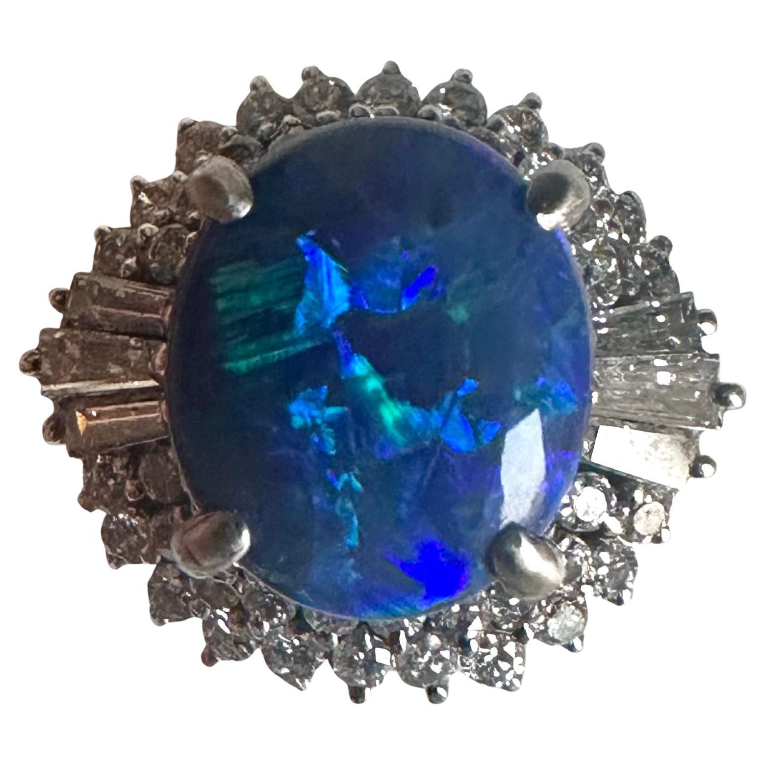 Diamante, Ópalo, Ópalo negro, oro 18 kt, Platino