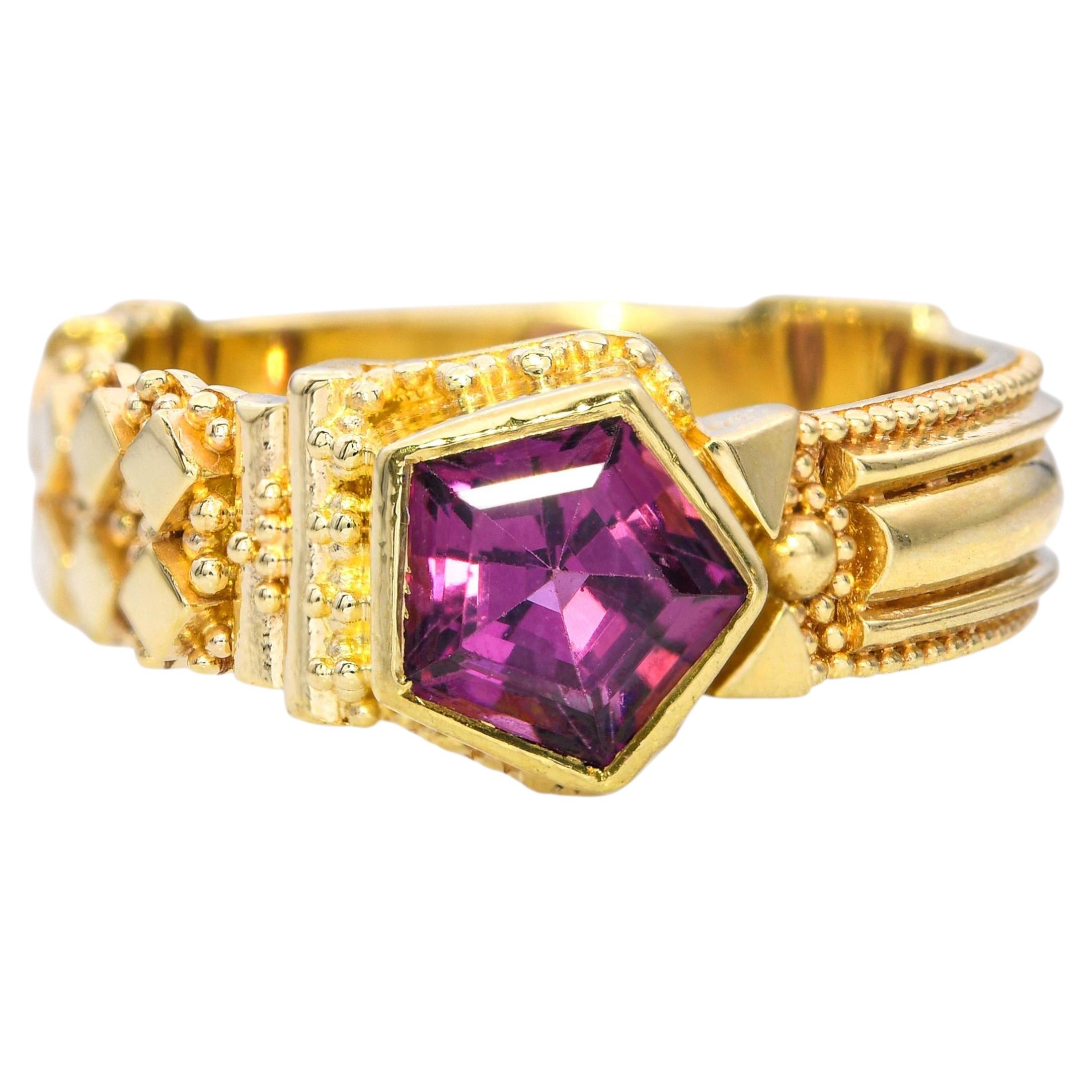 Anillo de plata chapada en oro alemán Kabirski Revele de 18 quilates con granate rodolita