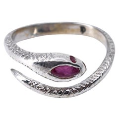 Anillo Serpiente Plata de Ley Esmeralda y Rubí Ojos - Marqués- Diseñador J DAUPHIN