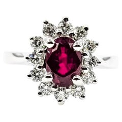Anillo de halo antiguo de aprox. finales del siglo XIX principios del XX con rubí rojo 5 mm x 4 mm/ aprox. 0,45 ct y 10 diamante viejo corte Ø 1,5 mm / 0,015 ct c/u = Piedras de ...