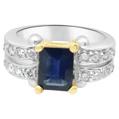 Anillo de oro blanco de 18 quilates con zafiro azul cuadrado de 1,57 quilates y diamante brillante de 0,25 quilates