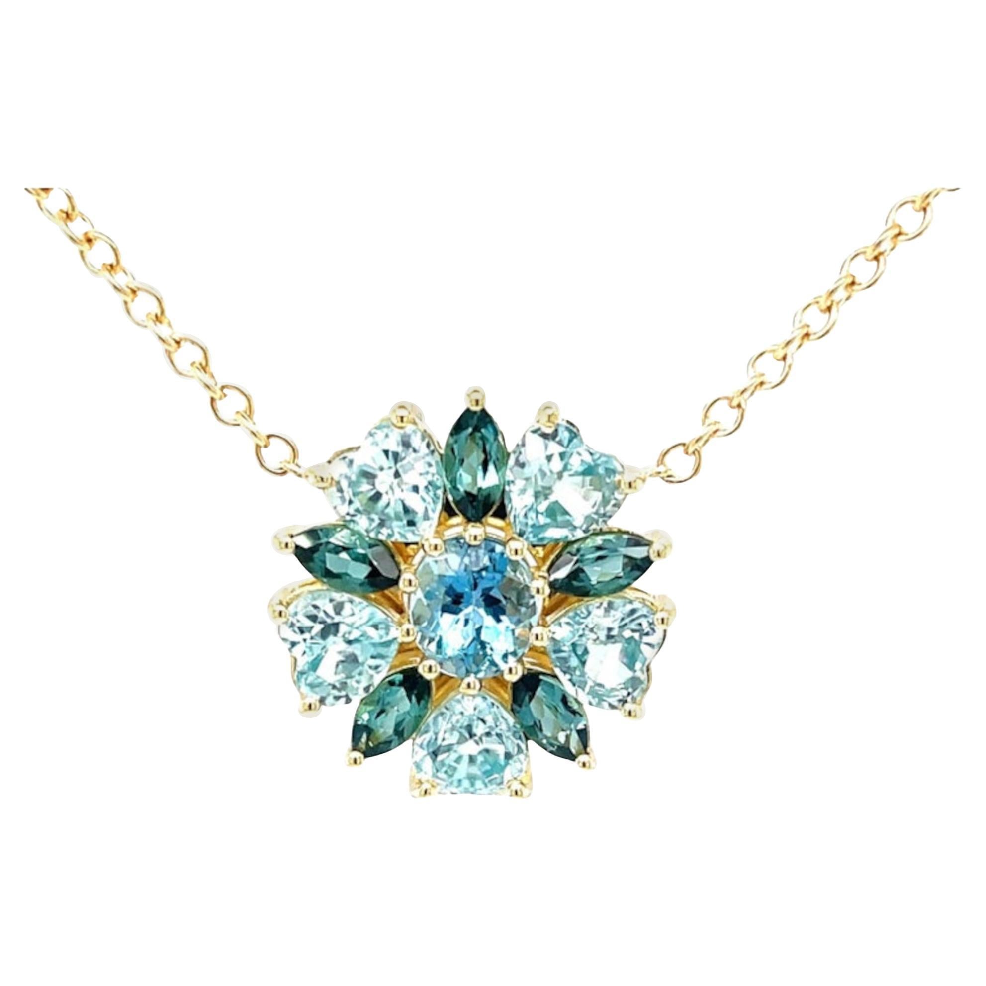 Colgante FLORA, Opalita con Topacio Azul Cielo y Oro de 14k