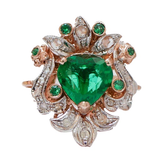 Stone, Spinel, Diamonds, Rose Gold and Silver Ring.