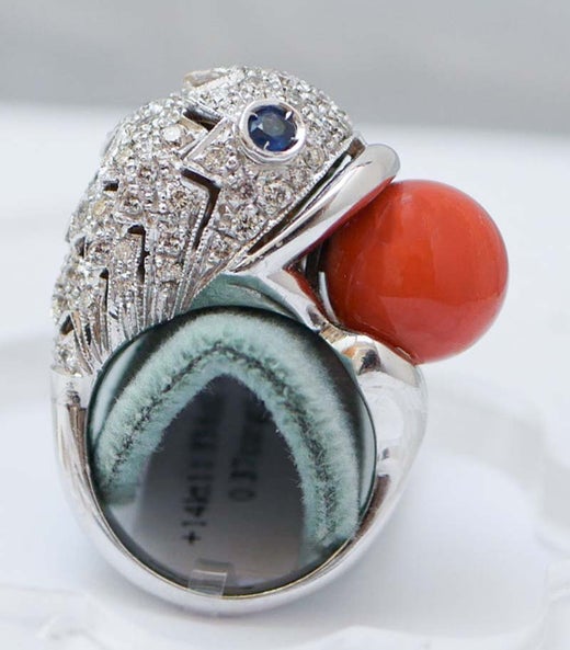 Coral, Diamante, Esmeralda, Ónix, Rubí, Zafiro azul, oro 9 kt, Oro amari...