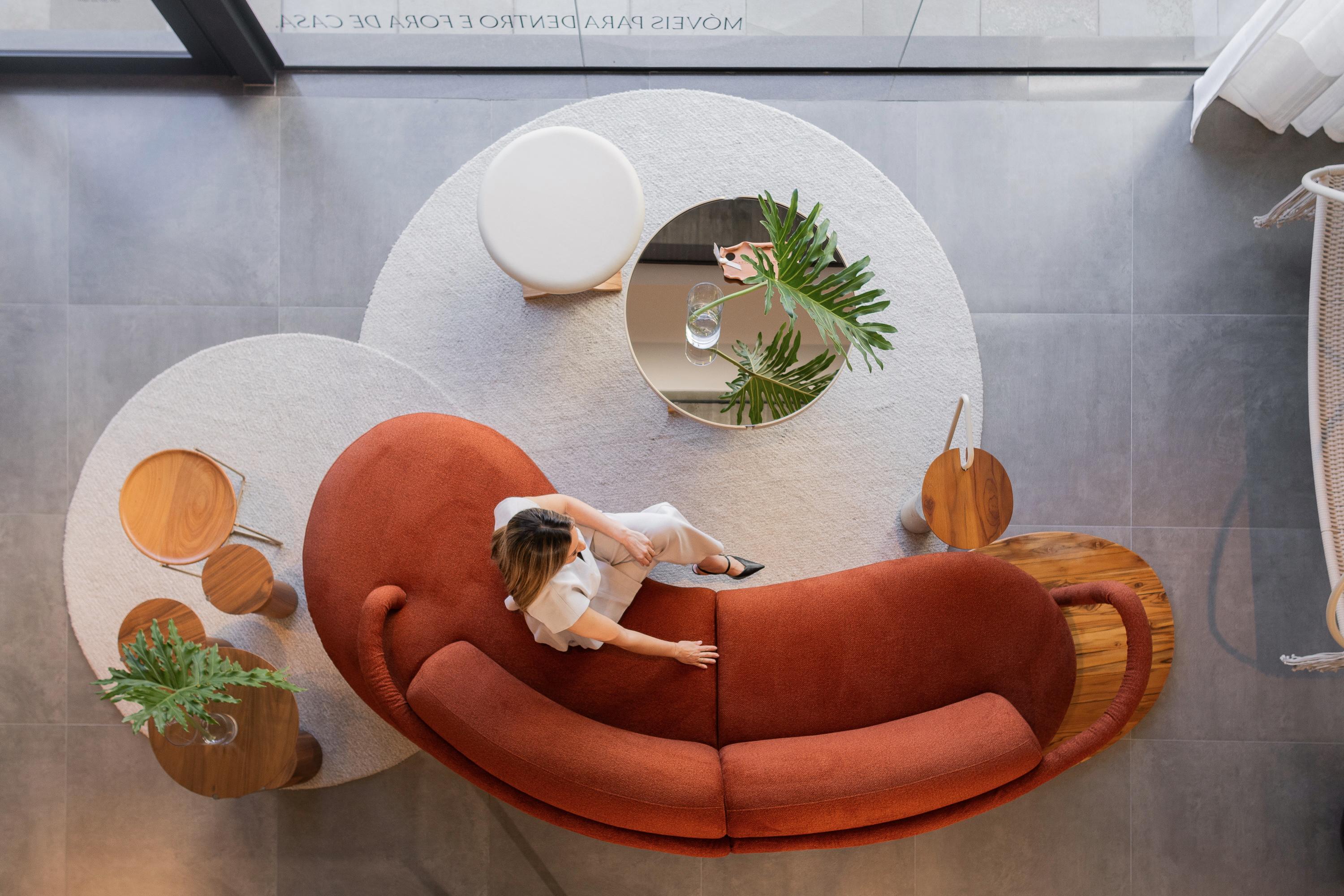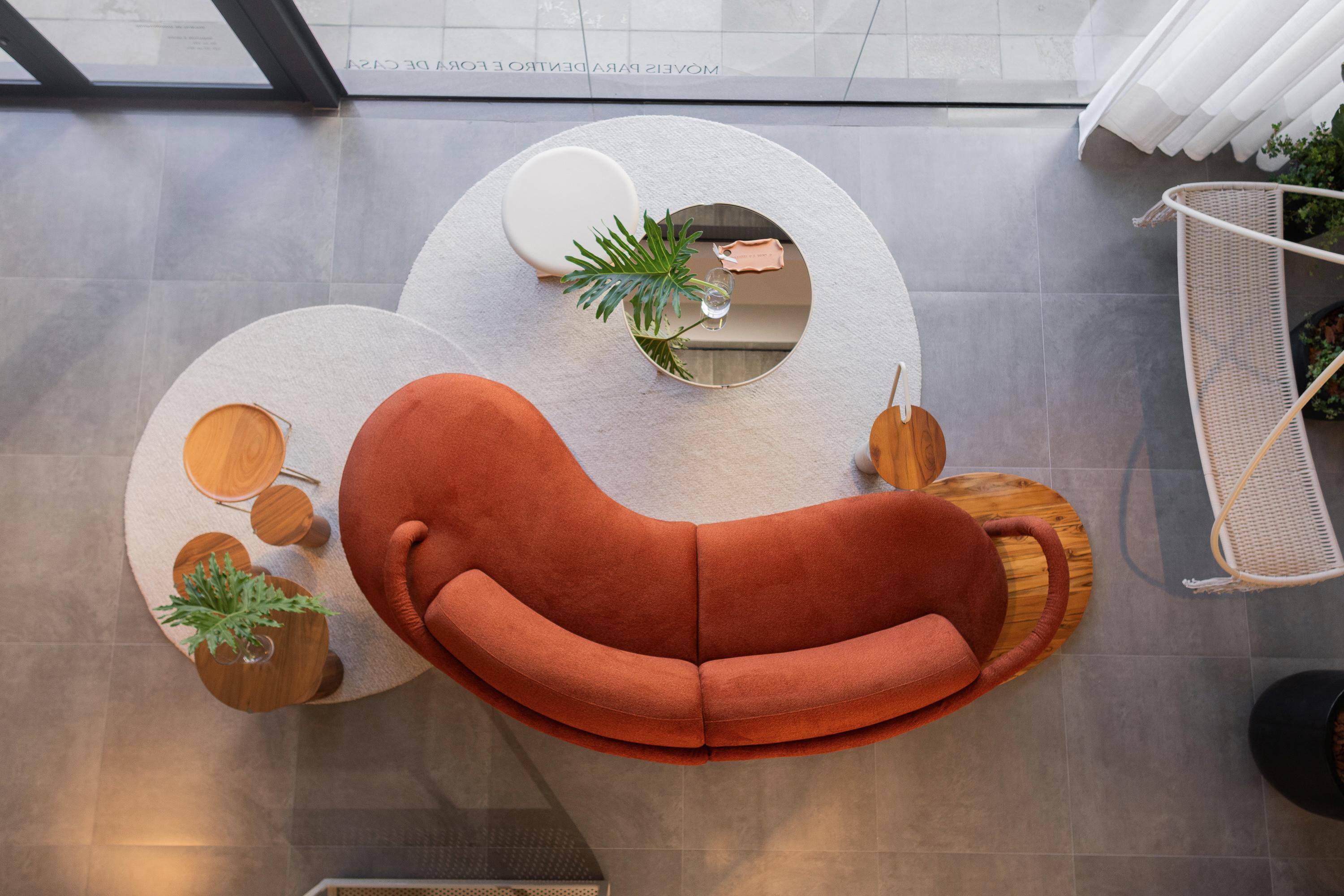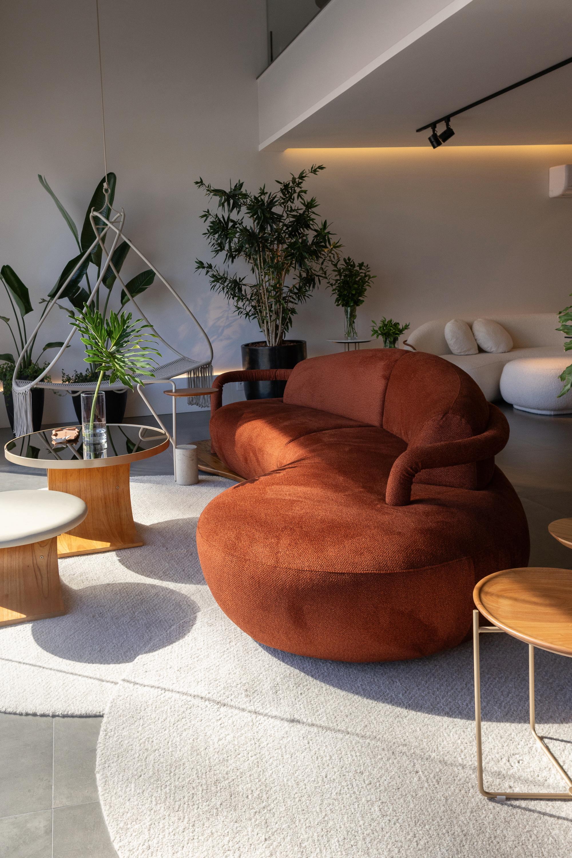 El Sofá Orgánico Felicità presenta un diseño fluido que expresa la esencia del bienestar y la calidez, ofreciendo una experiencia de confort única ideal para salones, salas de estar y espacios gourmet de interior.