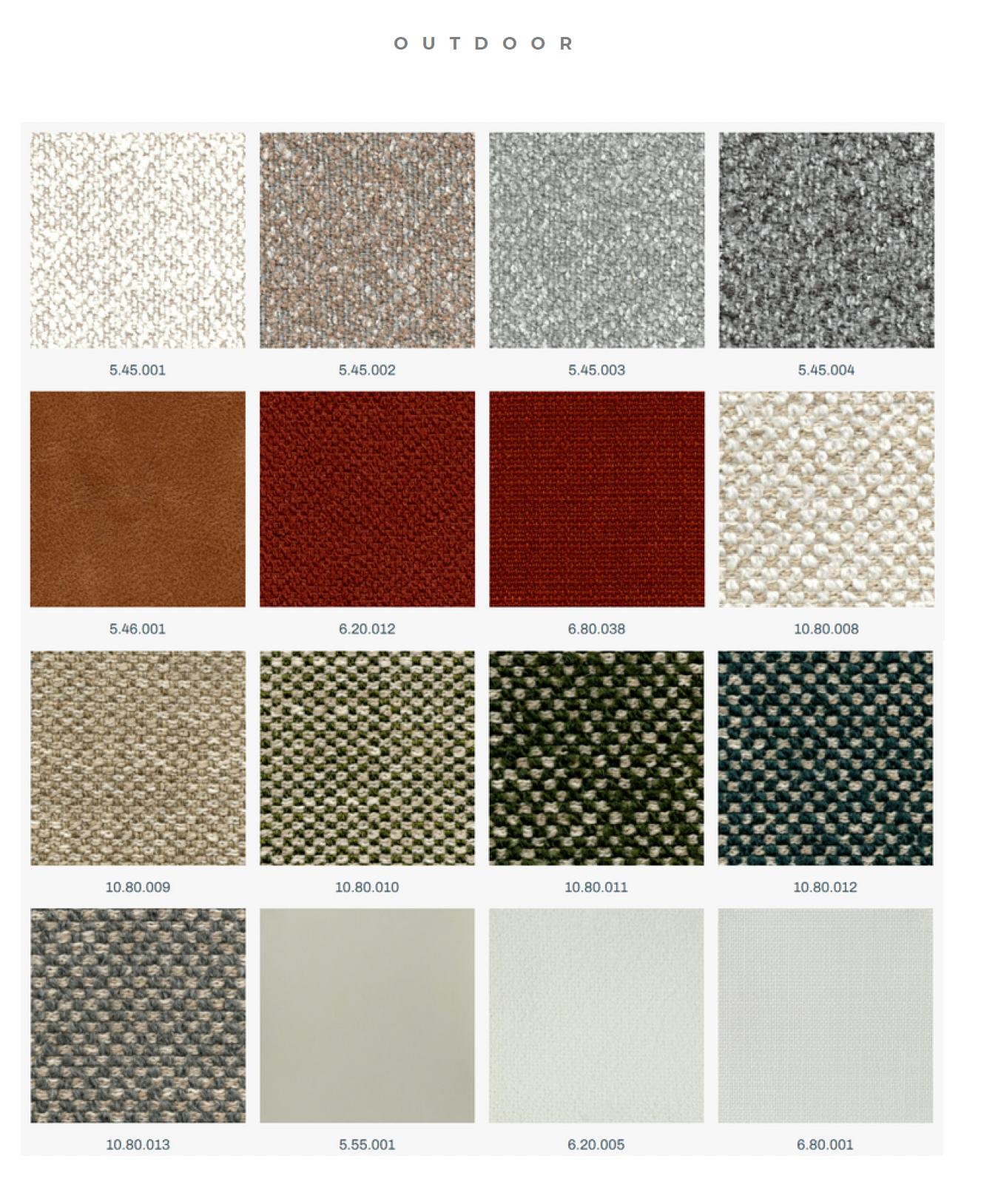 El tejido es de tipo bouclé para exteriores, una gran innovación cuando se trata de artículos resistentes al sol, la lluvia y el cloro de las piscinas.