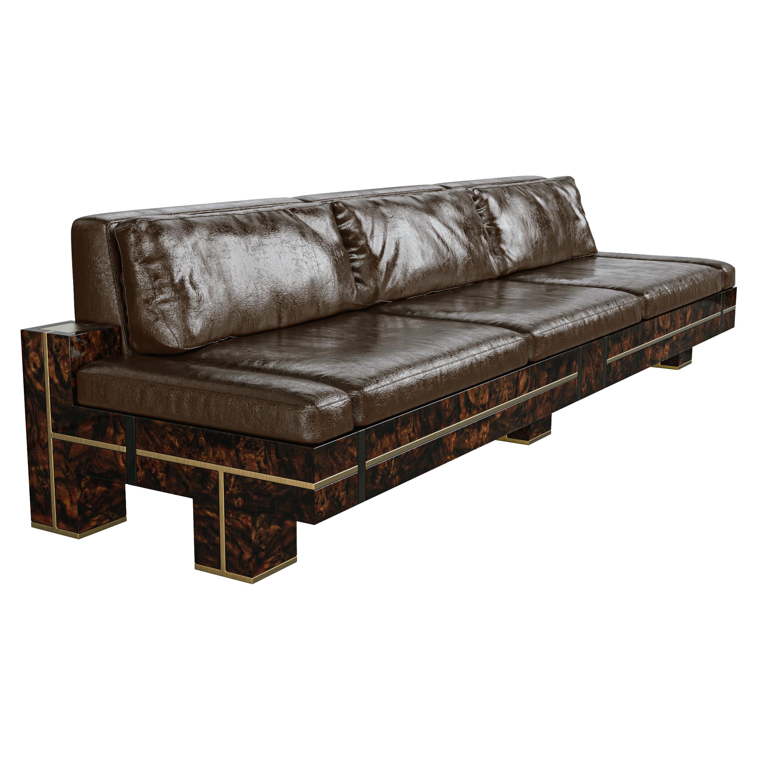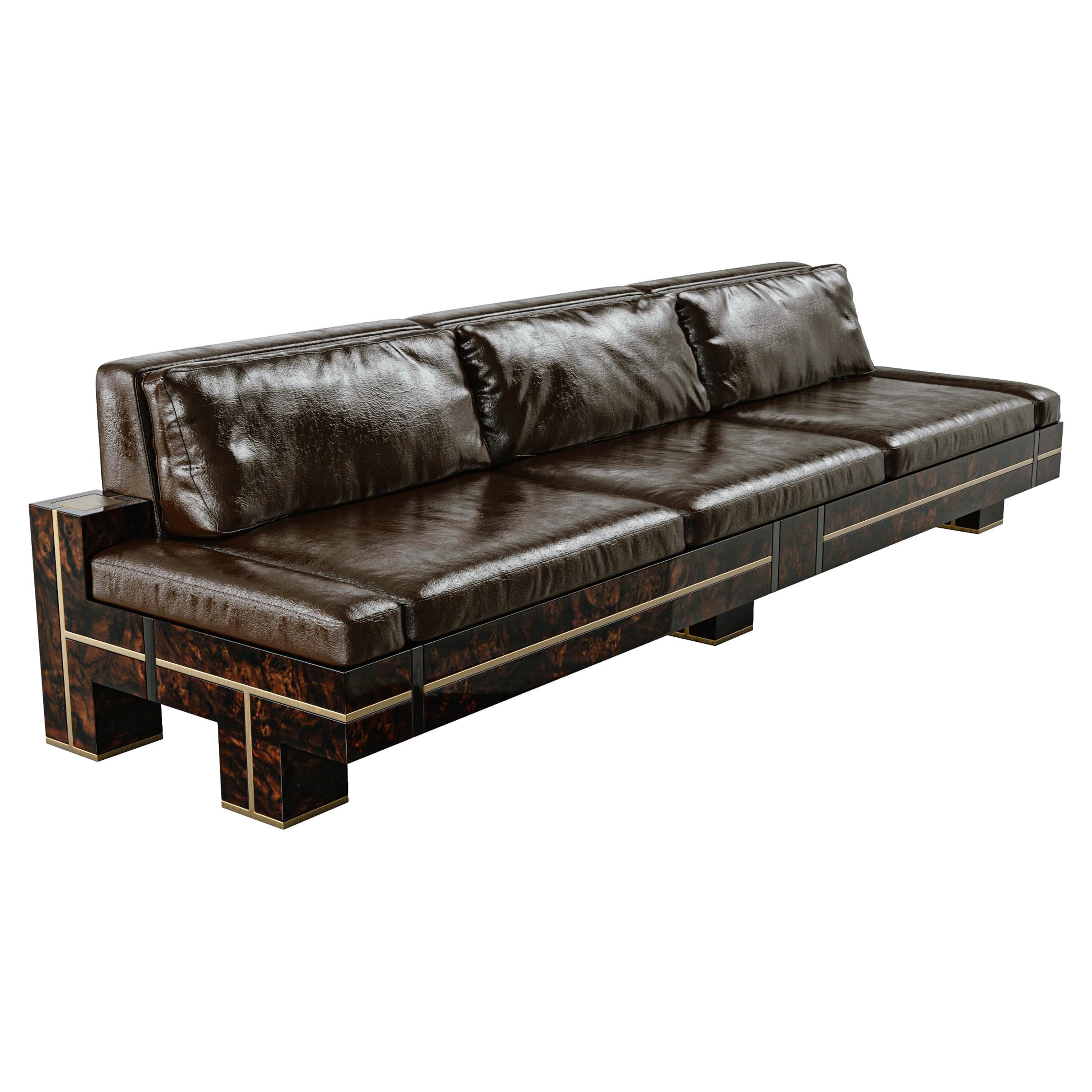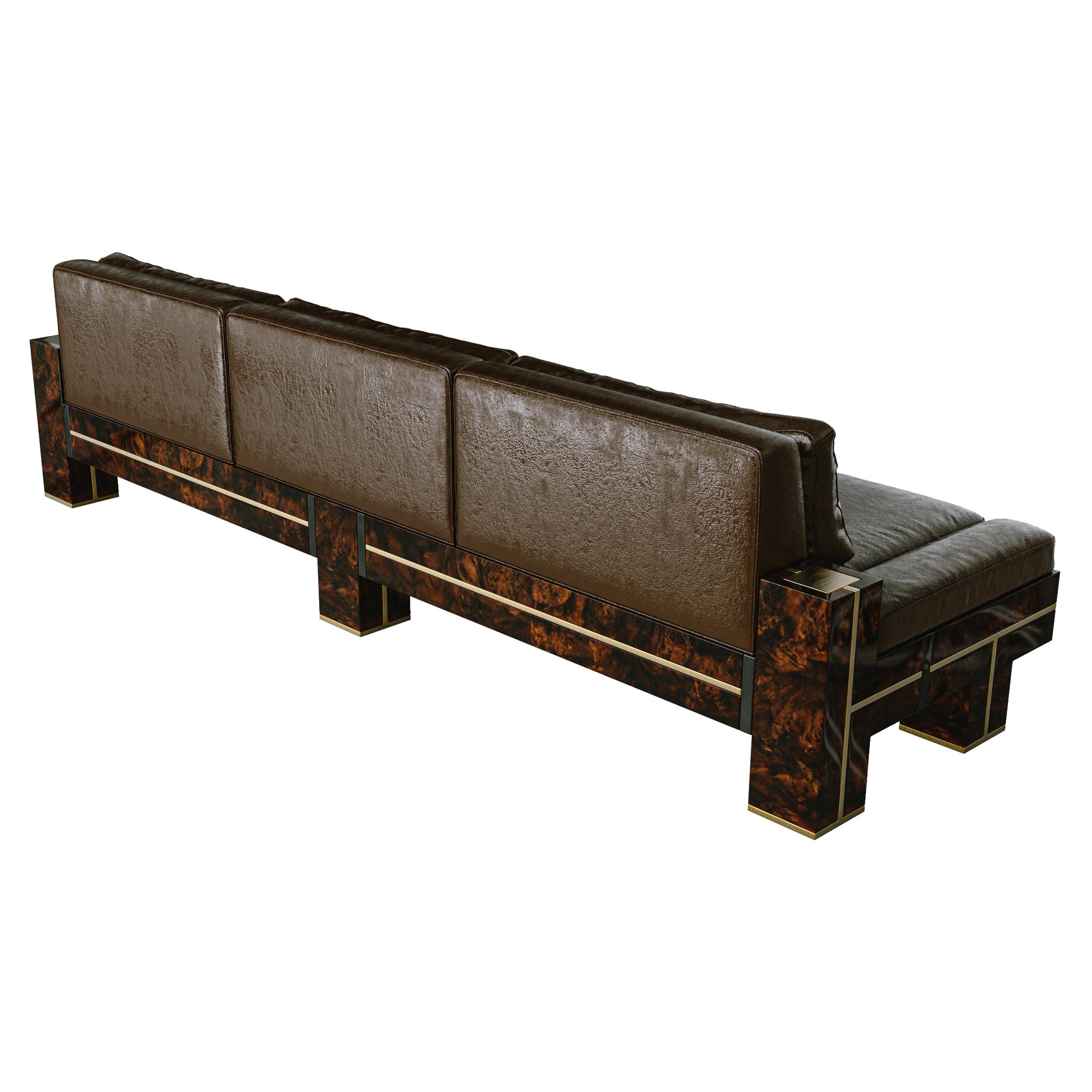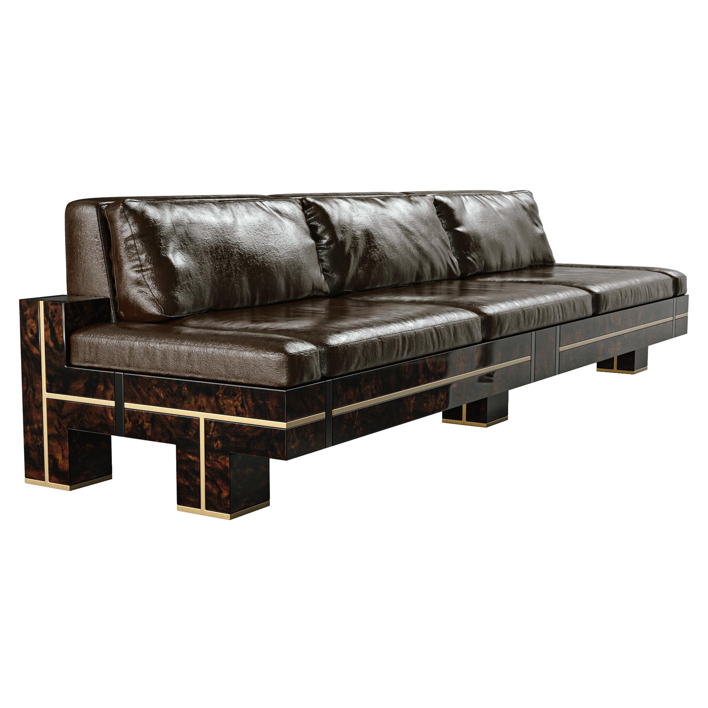 "Victoria" Sofa, with Burl Walnut, Bronze Details, Tailor Made Leather, Istanbul.