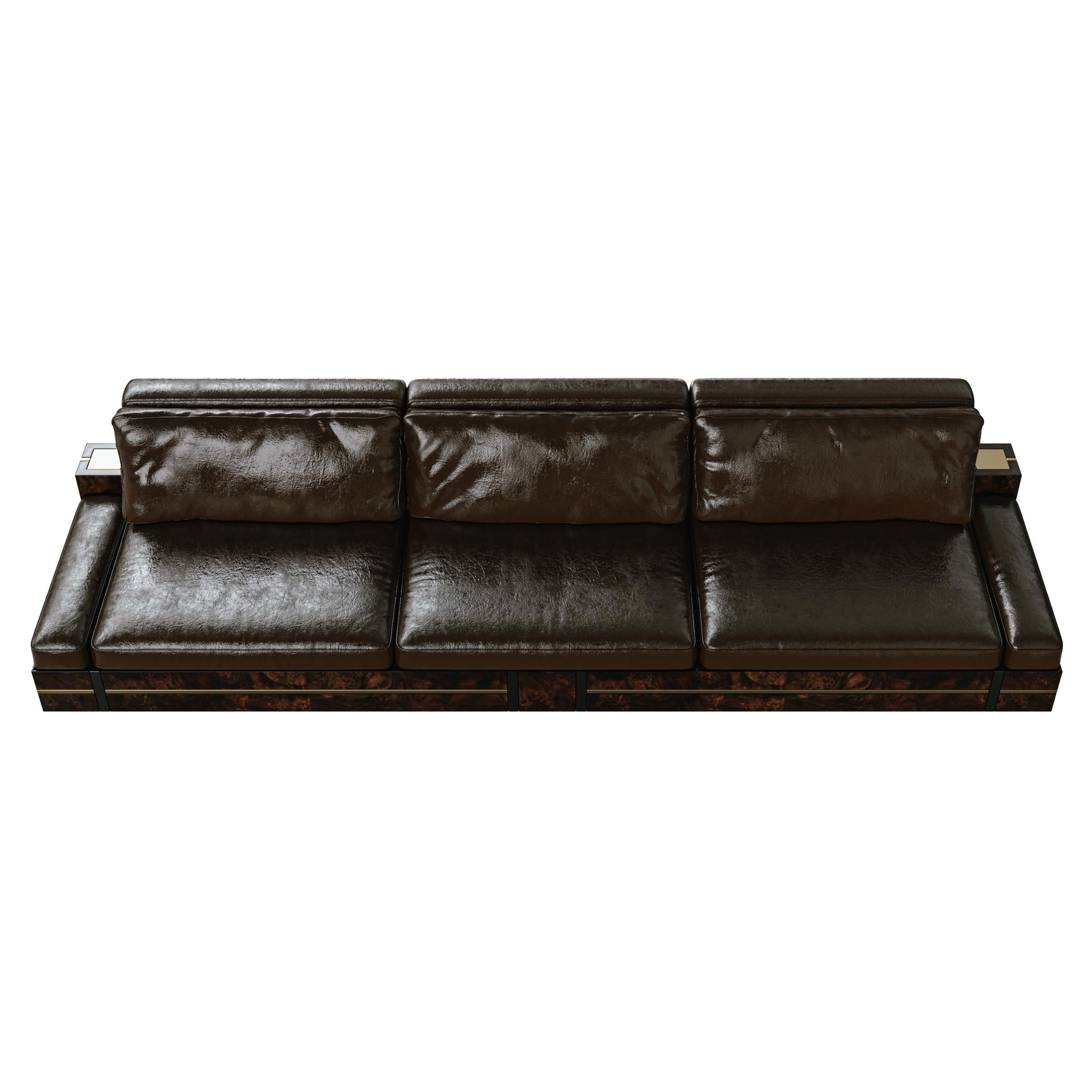 "Victoria" Sofa, with Burl Walnut, Bronze Details, Tailor Made Leather, Istanbul