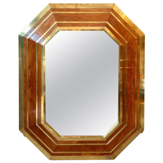 Espejo octogonal de madera de Jean Claude Mahey, Francia 1970