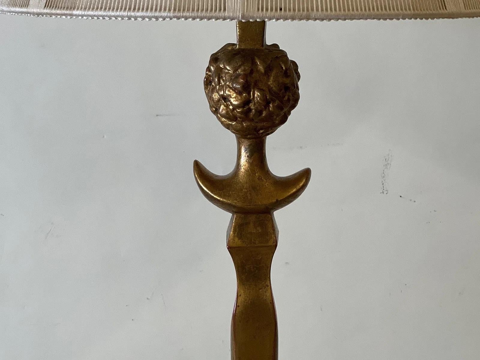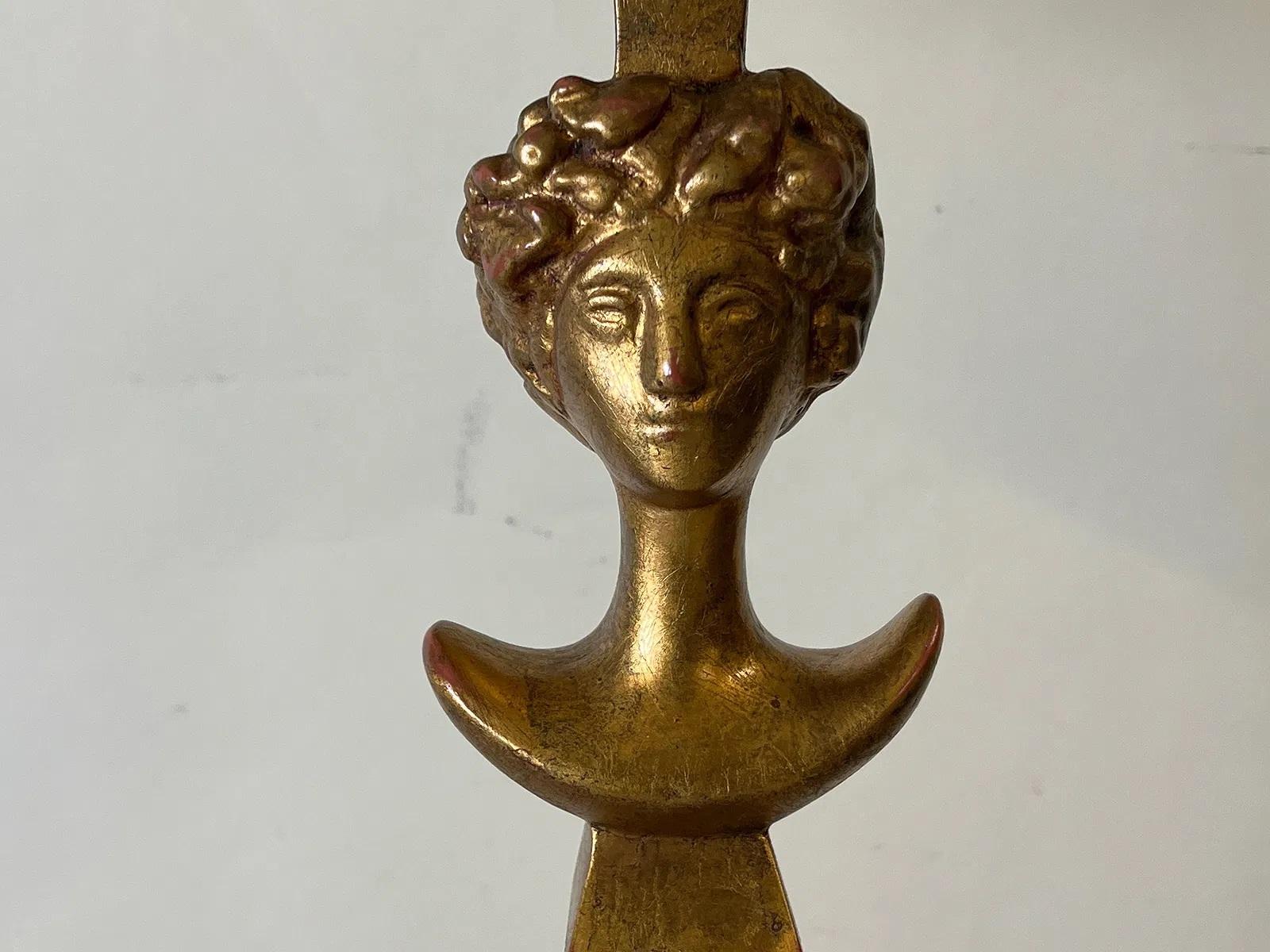 Lámpara de pie de madera dorada al estilo de Alberto Giacometti "Tête de Femme" (Cabeza de mujer)