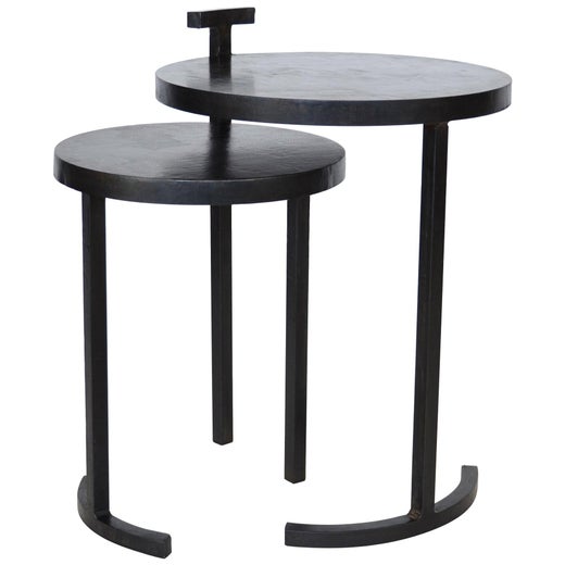 Pareja de Cocktail Tables Modern Minimalist Round Handmade Blackened Steel