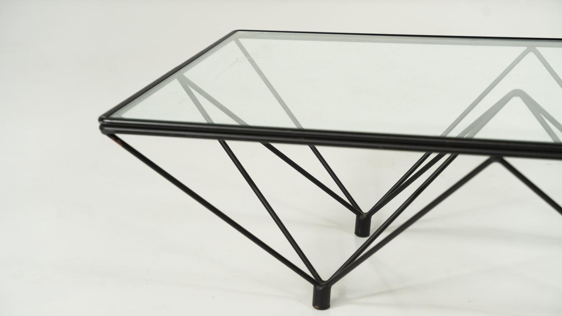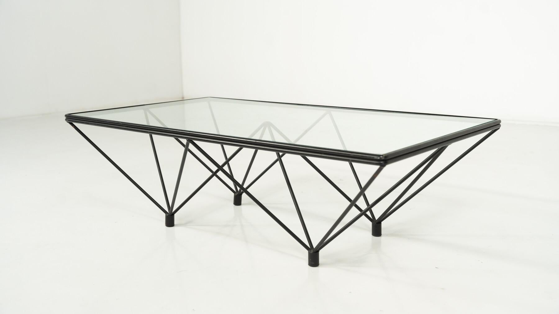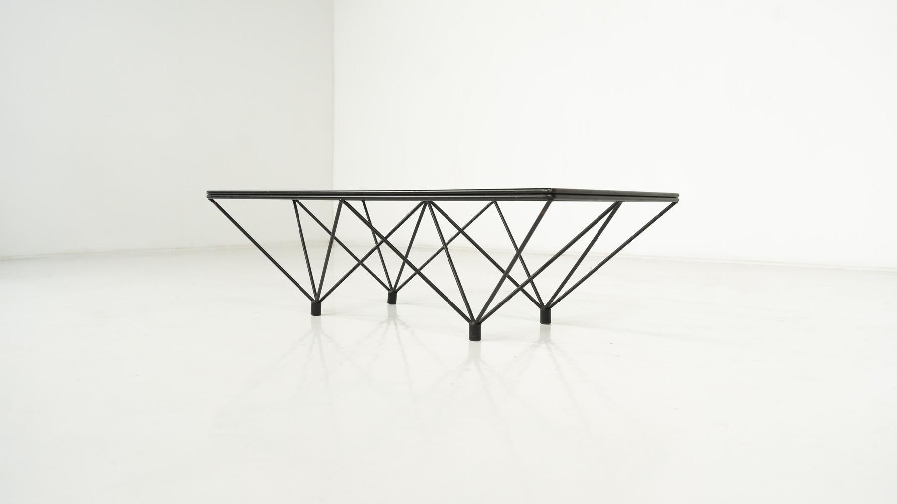 Rara mesa de centro grande Vintage (6 secciones) de Paolo Piva para B&B Italia 1975, Minimalista y escultural, metal y cristal. "Alanda", las grandes dimensiones son muy raras, en se...