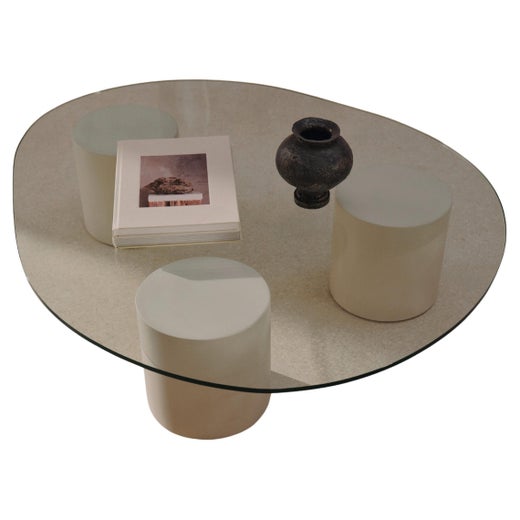 Mesa de yeso natural de diseño belga contemporáneo, hecha a mano, con un carácter texturizado y terroso.