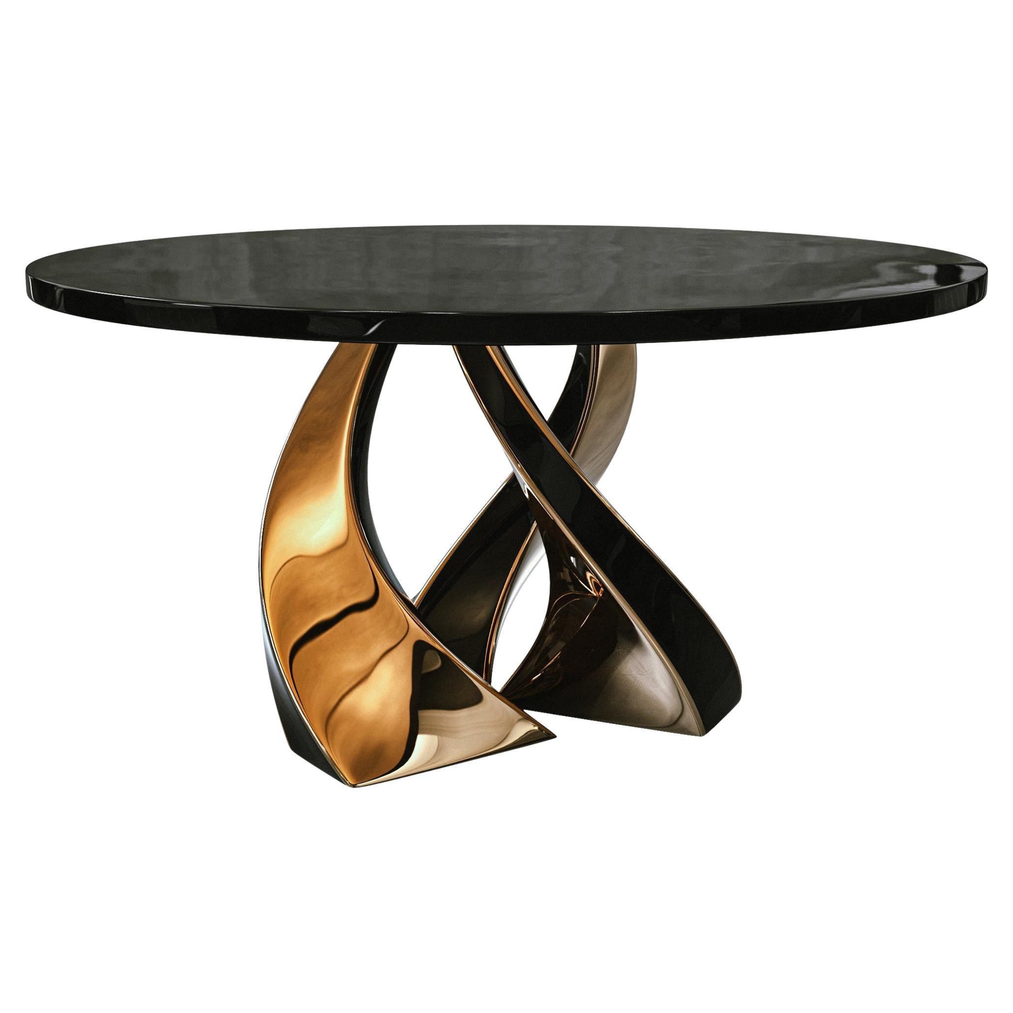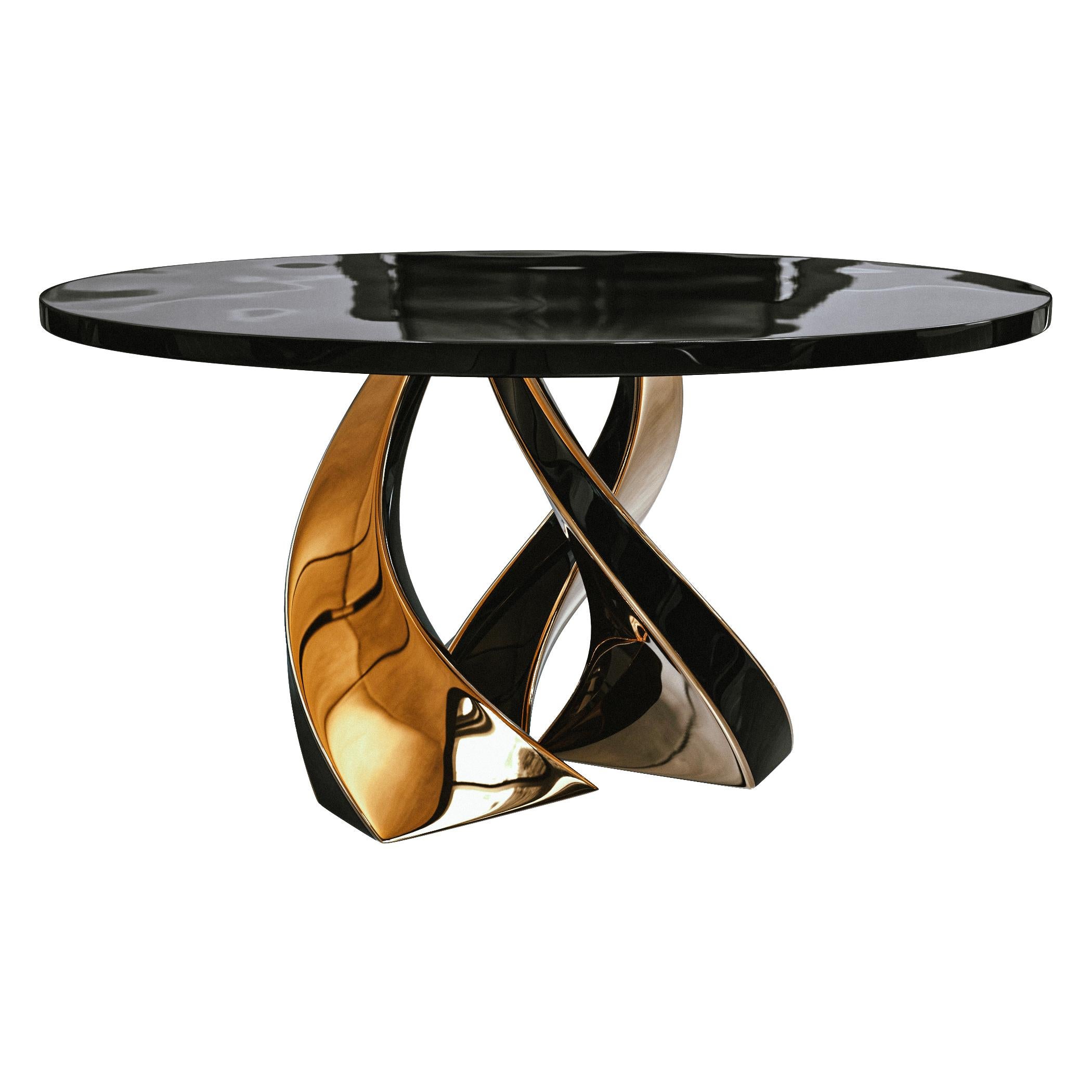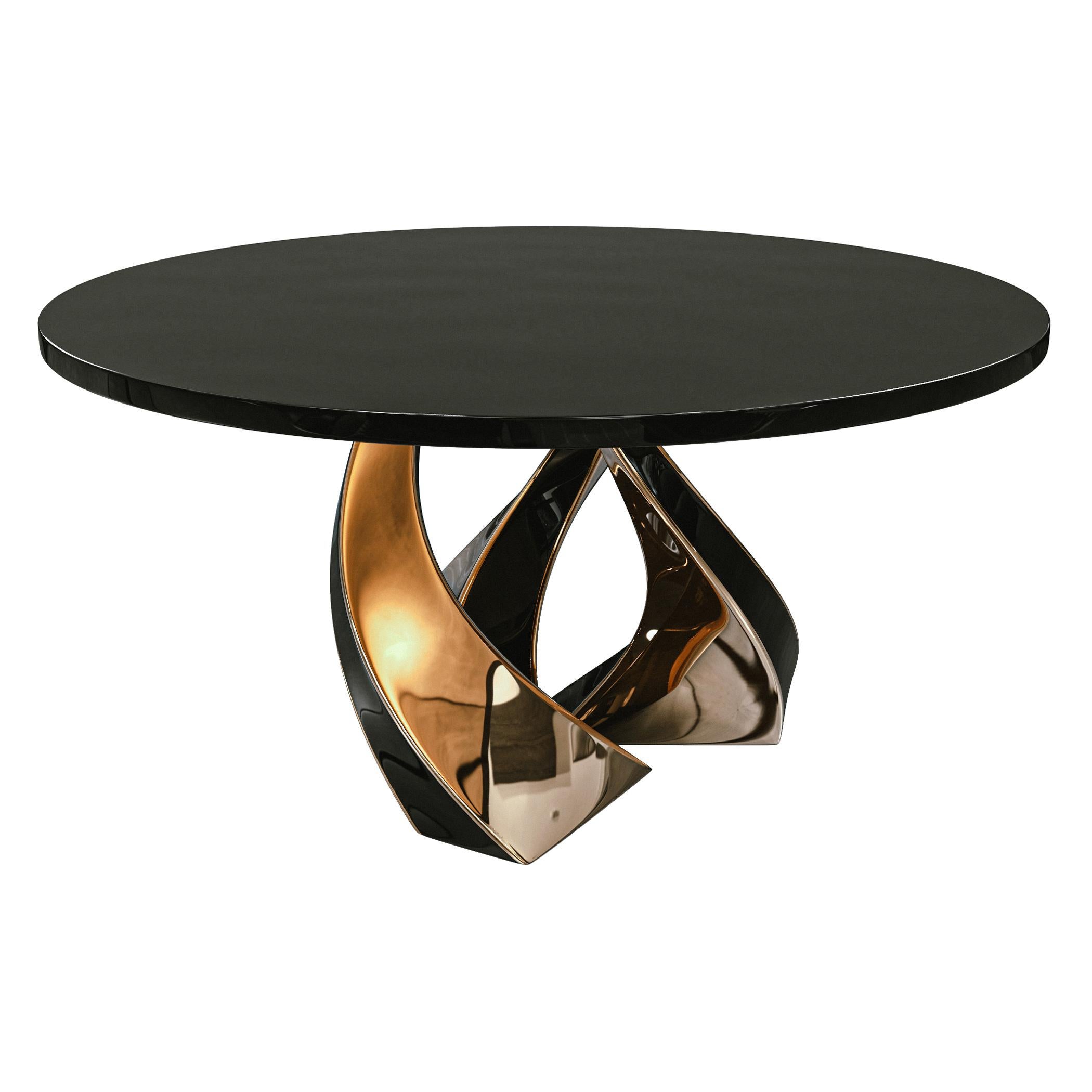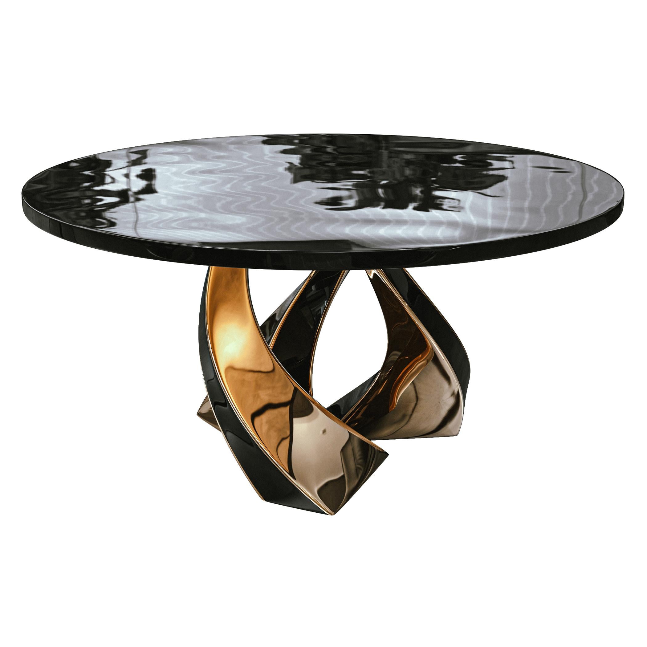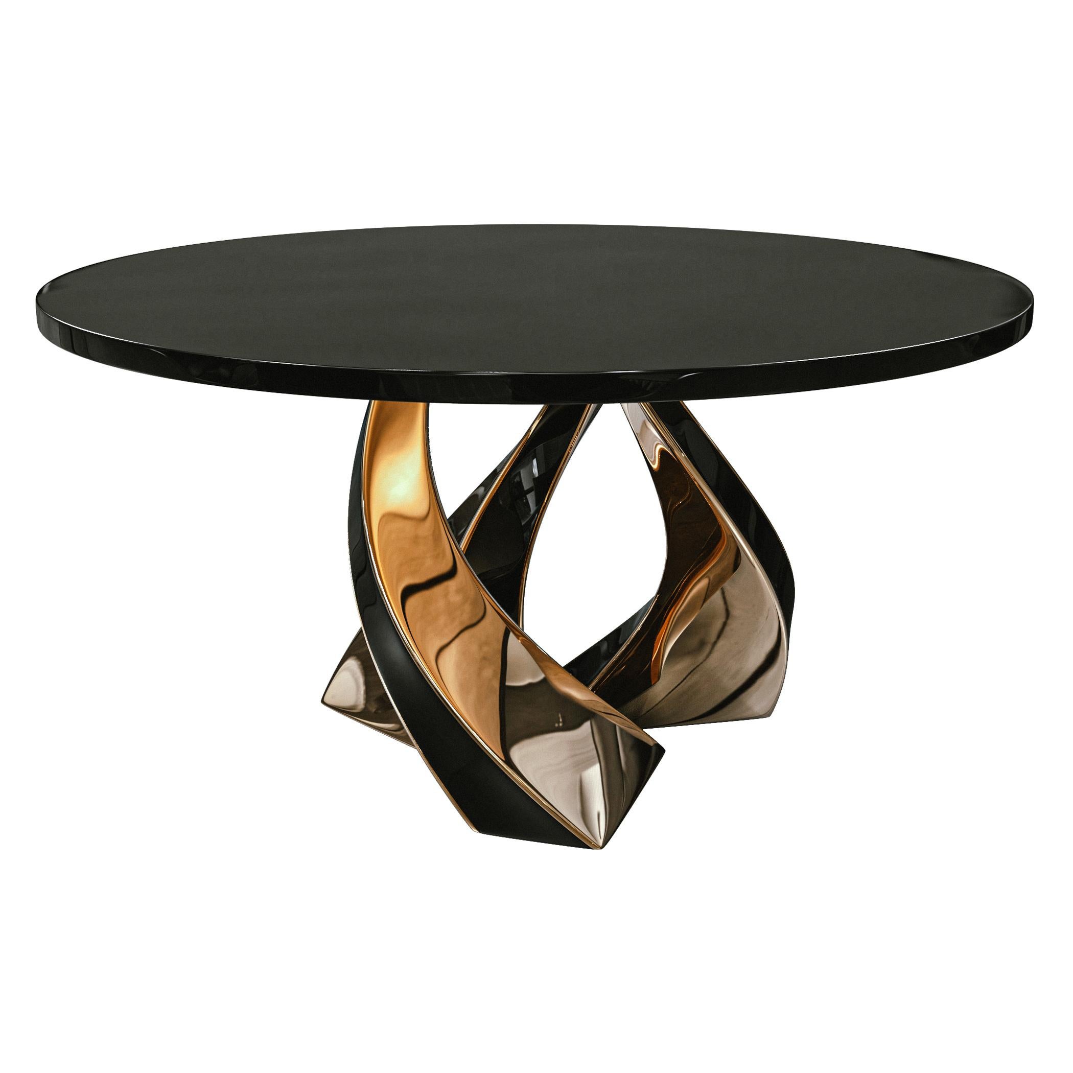 "Roxelan" Round Table with Stainless Steel and Bronze, Handmade, Istanbul