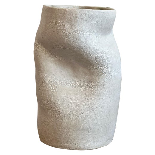 Jarrón lunar orgánico moderno hecho a mano con un cuerpo de arcilla groggy recubierto de capas de esmalte blanco brillante y mate, y un esmalte de lava muy texturado. Cada jarrón se ...