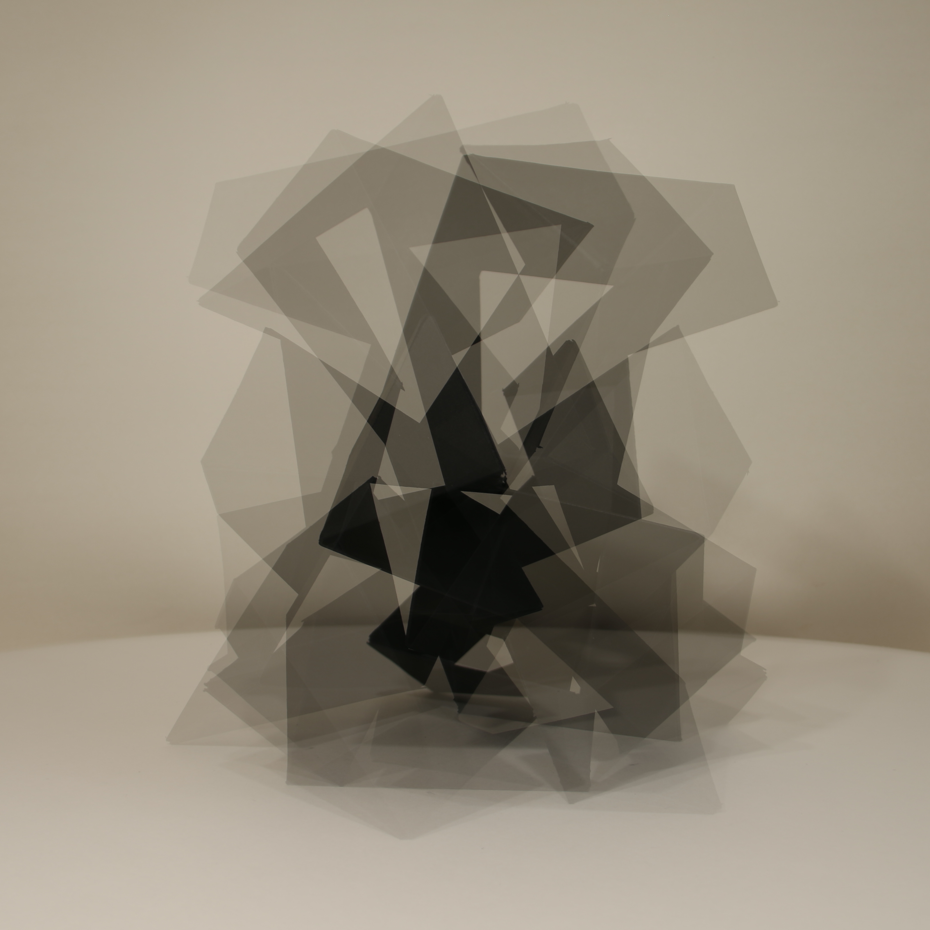 The fact that parts of what you see are semi-transparant and you seem to look through the object and at the same time around the object, is in a way revealing to the public what it would be like if you actually are in the 4th dimension. Using abstraction for his work, the artist wants people to wonder what they see. By not understanding what they see, the viewer has to watch on a different level. “Time is a Construct” is not about understanding, but about experiencing.