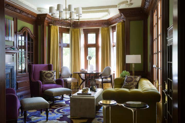 A 1920's Albert Farr designed home gets a thorough makeover with vivid and dynamic colors and furnishings.