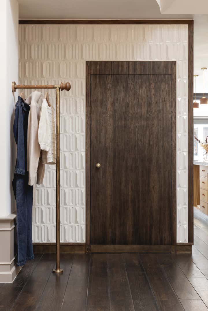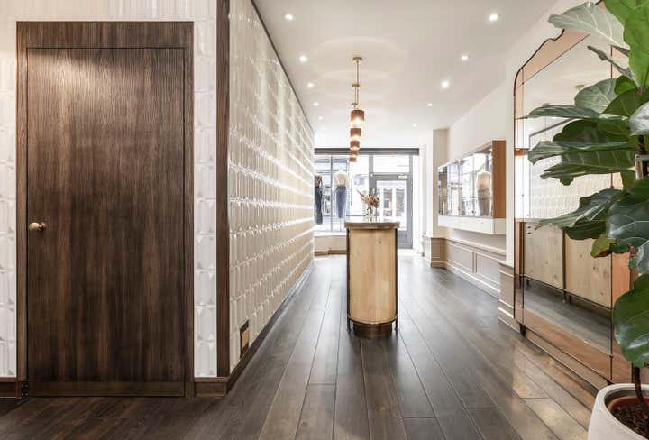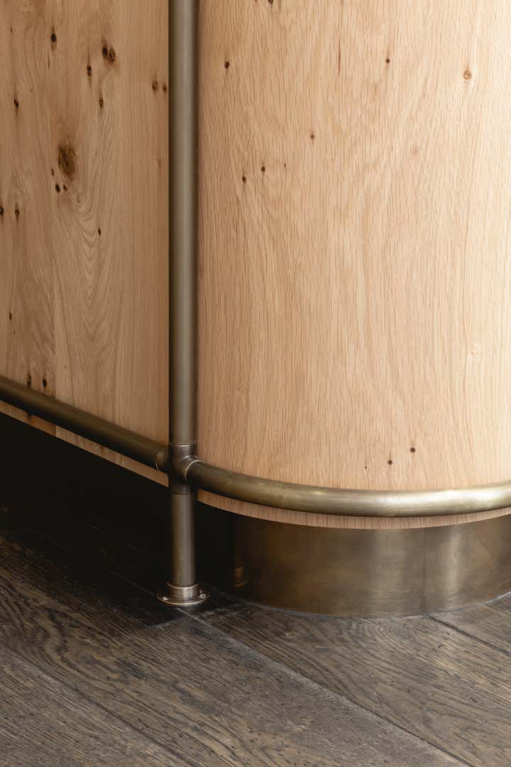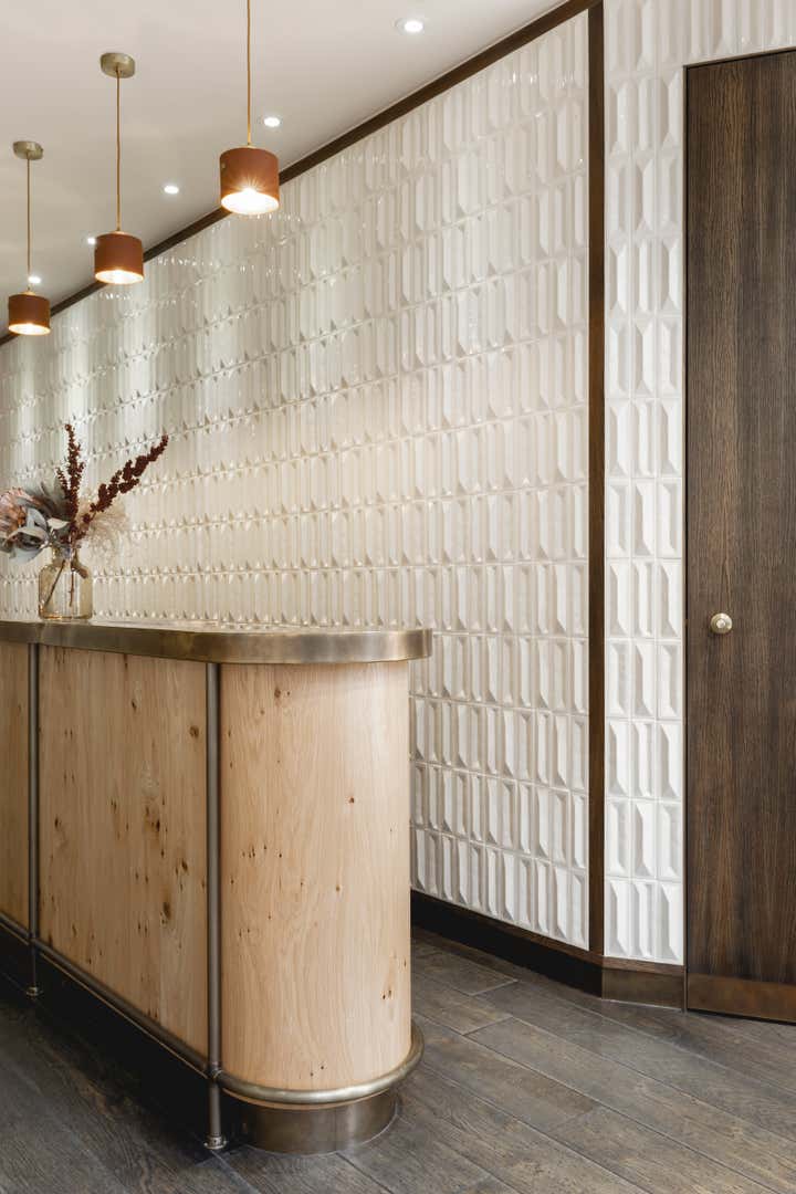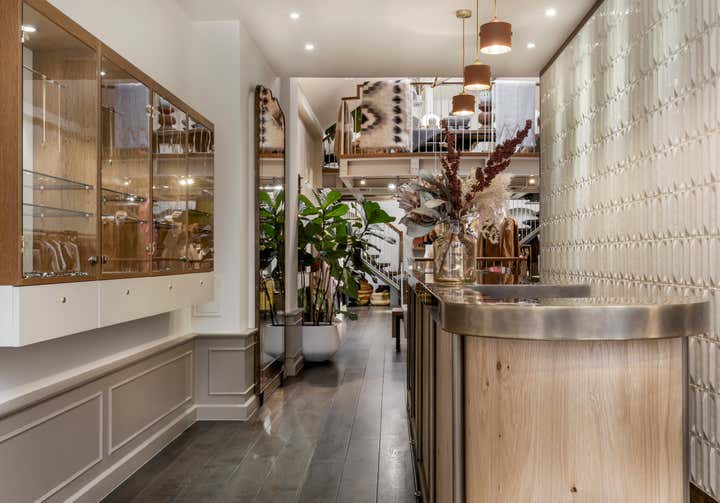 In 2019 Pernille Lind Studio was commissioned to work on the refurbishment of an existing women’s wear shop in Notting Hill, London. Couverture & The Garbstore has been a longstanding institution, rated as one of the top fashion and lifestyle retail destinations in the area. Our work was focused on creating a new sense of arrival and retail counter piece, as well as uplifting the shop’s finishes as a whole. We wanted to create something which was crafted and had character, so it could reflect the shop’s high standard of carefully selected garments and products. To achieve this, we used a rustic grade European oak for the retail-counter, embracing the natural knots and variations and keeping it in a natural tone. As a backdrop we added a playful mix of three-dimensional Italian tiles, with an alternating pattern of three variations. This creates a playful and tactile surface, which reflects beautifully onto the curved hand patinated brass counter top. Further a rich tone of terracotta coloured stoneware pendants and velvet covering, within the jewellery display, add yet another layer of depth and texture. The overall new designs have integrated well with the existing interiors, adding a subtle and elevated experience of contemporary elegance. Completion 2020