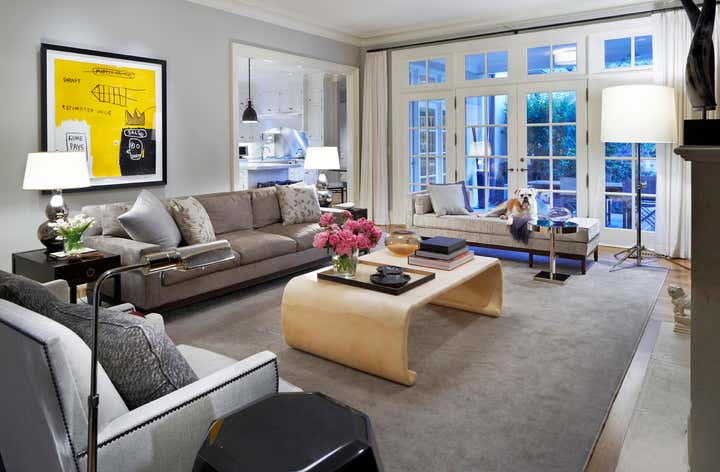 Topping off the layered tableau is the clients’ blue-chip contemporary art collection. Bold and kinetic works by Andy Warhol, Jean-Michel Basquiat, Robert Longo, and Donald Sultan are showcased throughout.